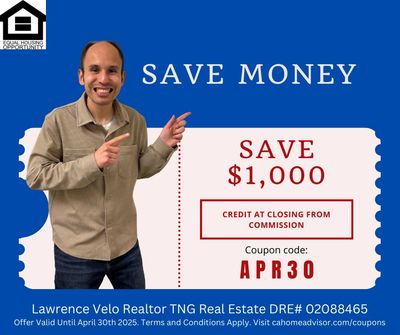 Until April 30th 2025, you can save up to $1,000 off your closing costs on your next home purchase or sale. Can be applied towards Single family homes or condos within 40 miles of Whittier California. You the consumer are responsible for ensuring your eligibility for this discount at all times, such as but not limited to: contacting your loan officer for maximum lender allowable credit from any source including buyer broker commissions, contacting escrow to ensure you have enough applicable closing costs to receive $1,000 credit towards closing costs, and exercising any and all due diligence on any other factor affecting the permissibility and ability of receiving $1,000 credit towards closing costs. Lawrence cannot provide legal, financial, and or tax advice. Please consult an appropriate expert for such.